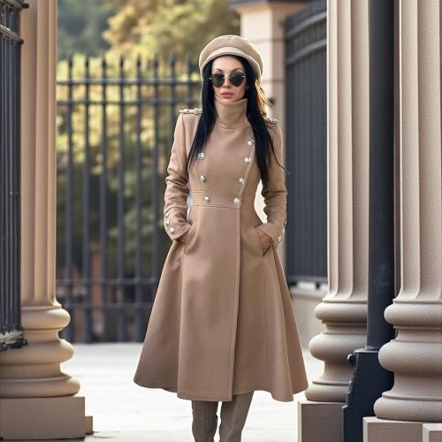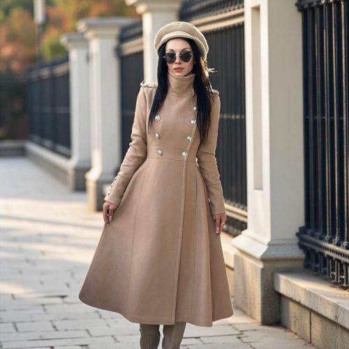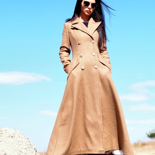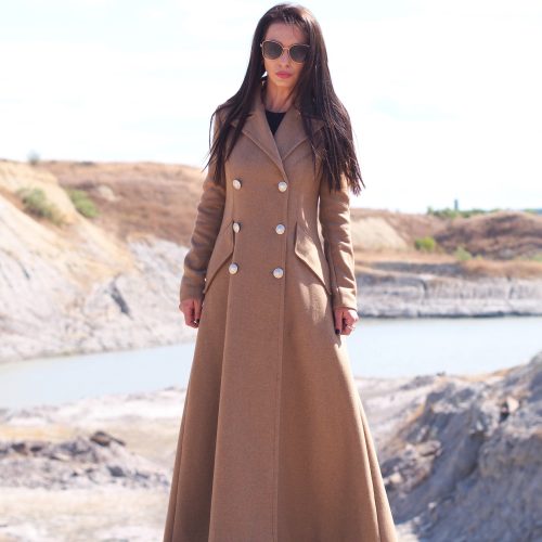 Long Wool Camel Coat Women Cashmere Elegant Maxi