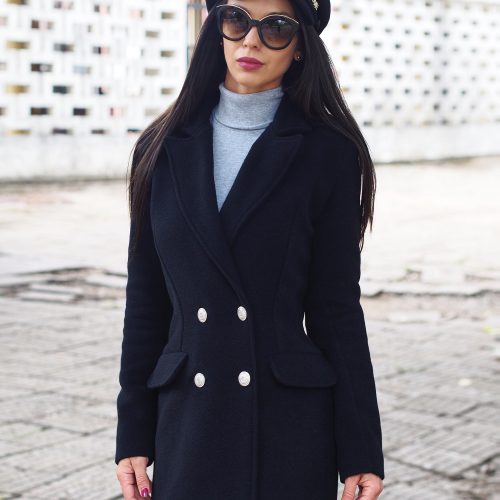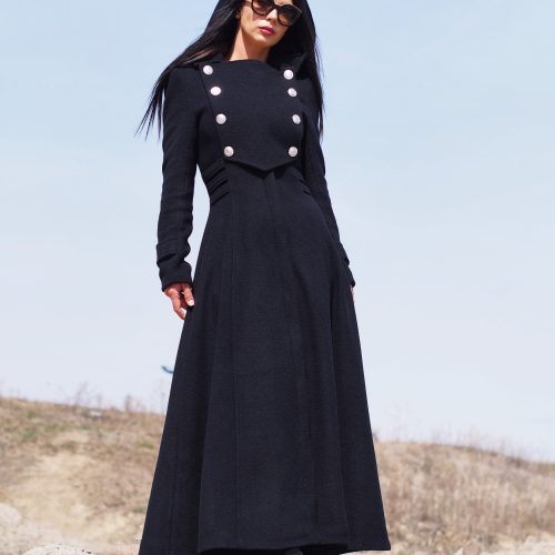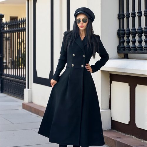 Elegant Winter Coat Black Cashmeere Women Cashmere Wool