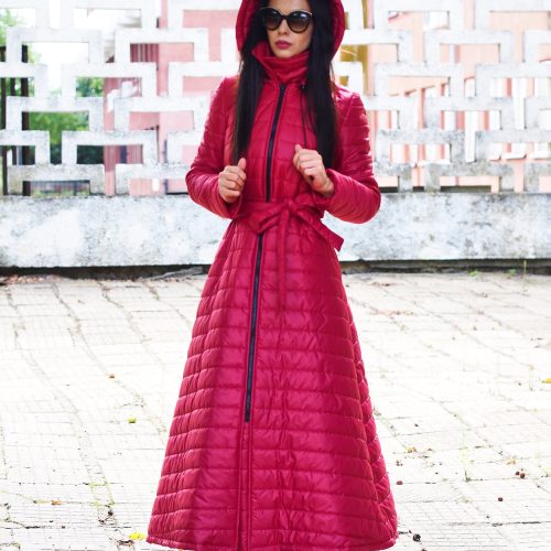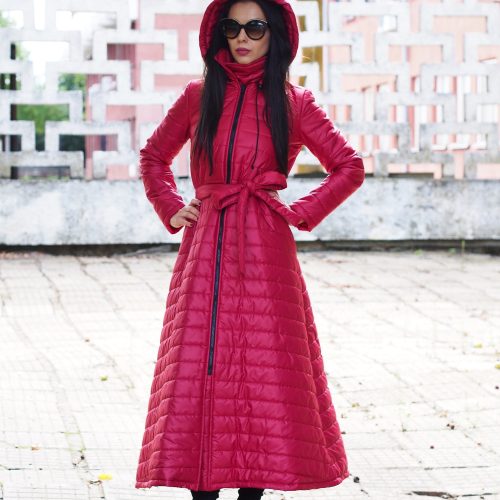 Red Long Coat Women Winter Quilted Qulted Jacket