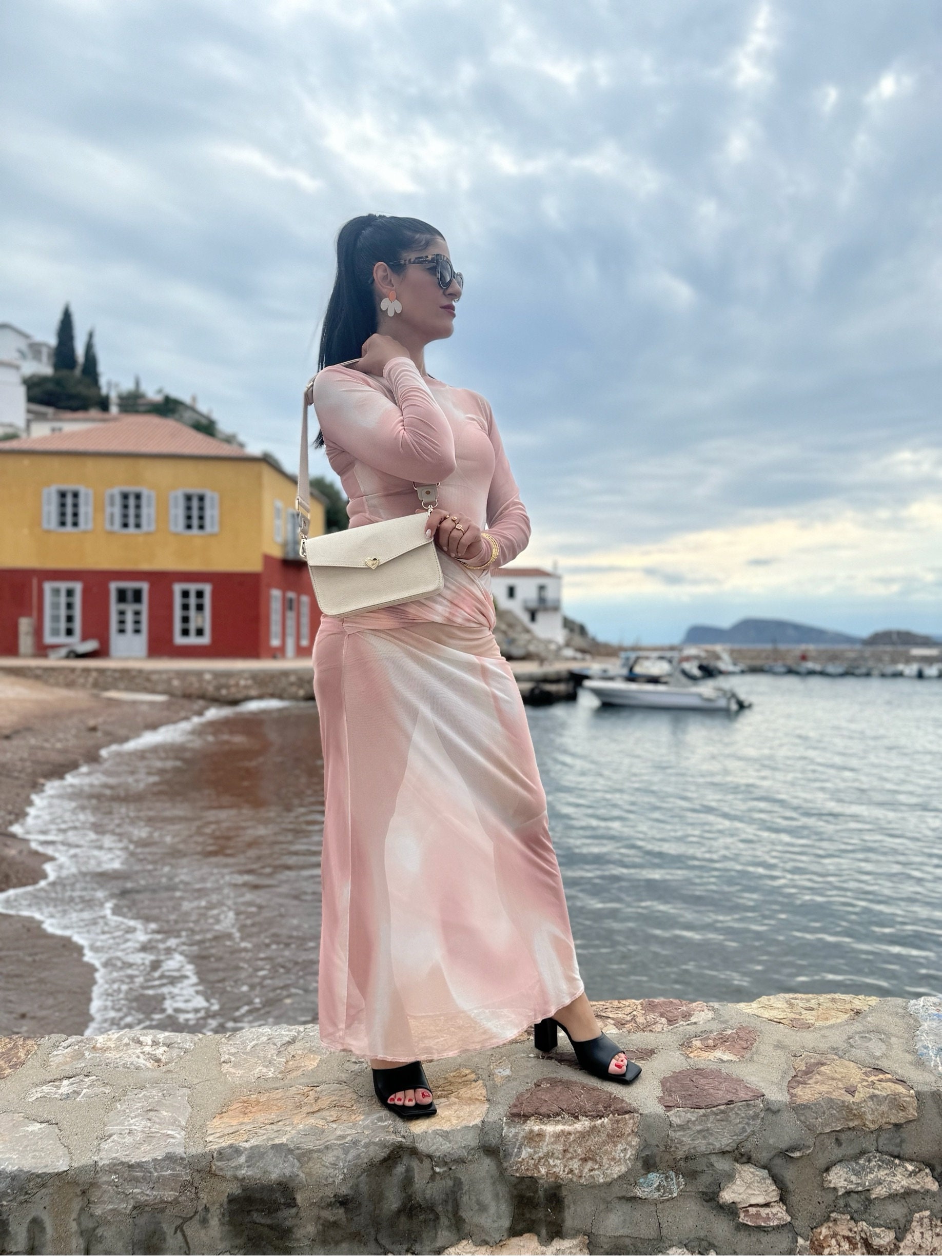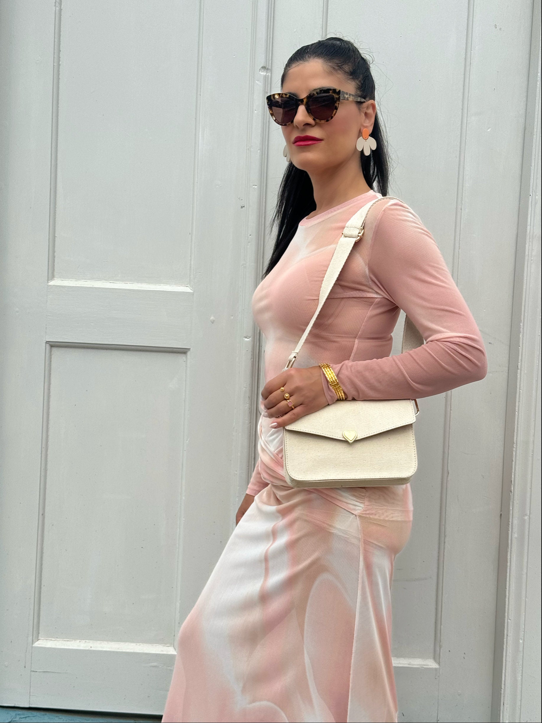 Beige Leather Shoulder Bag Canvas Handbag Women Purse