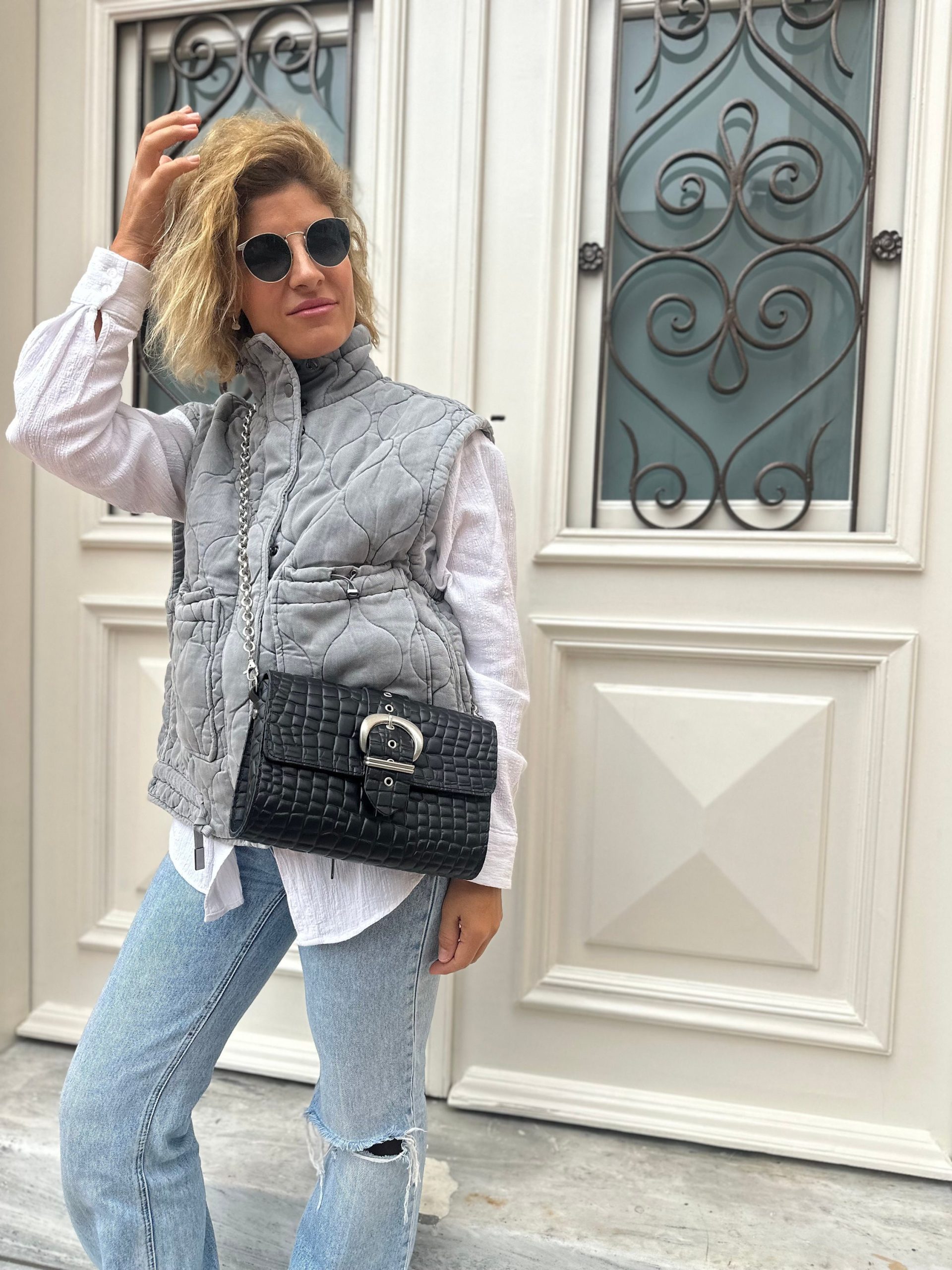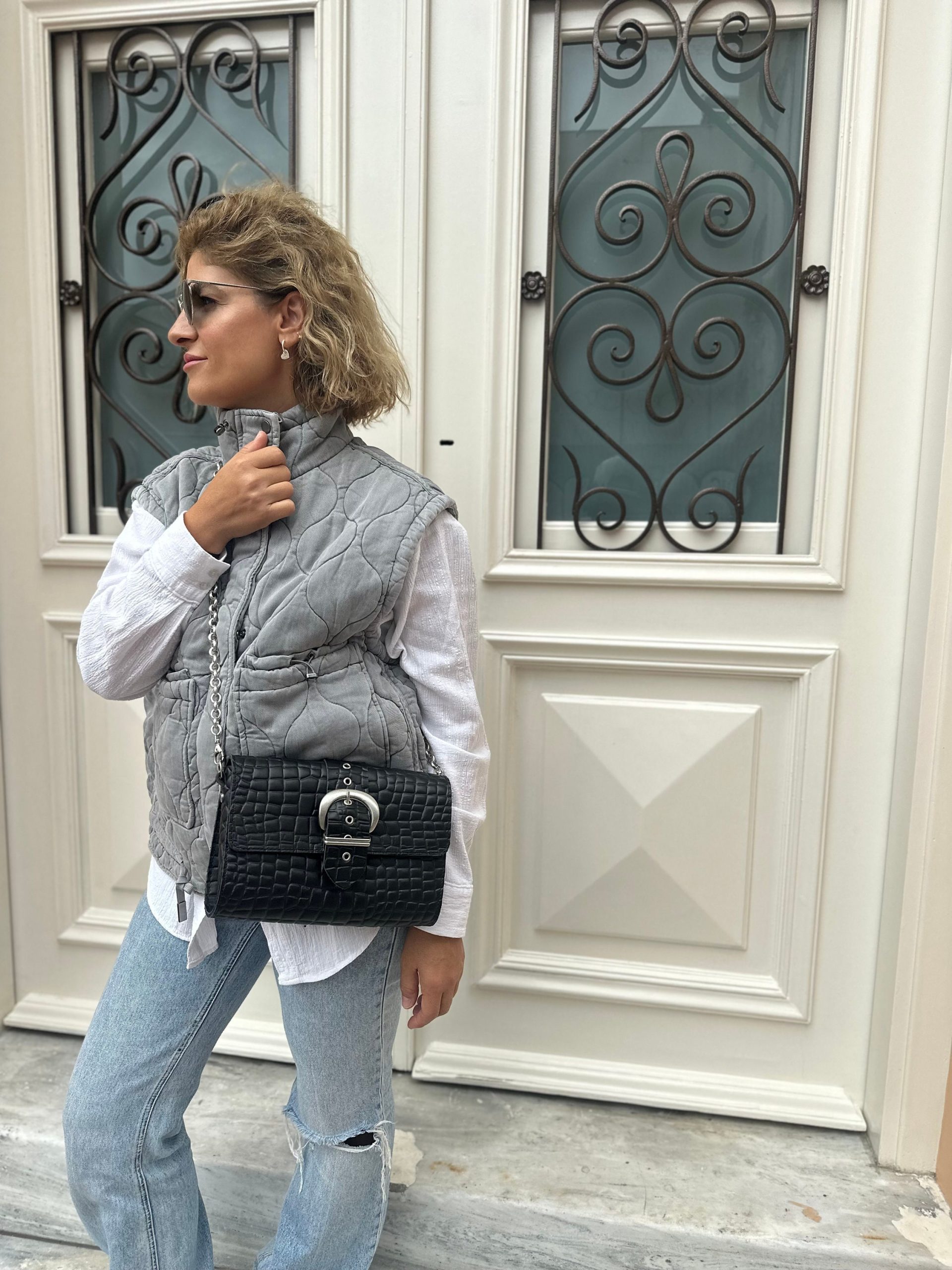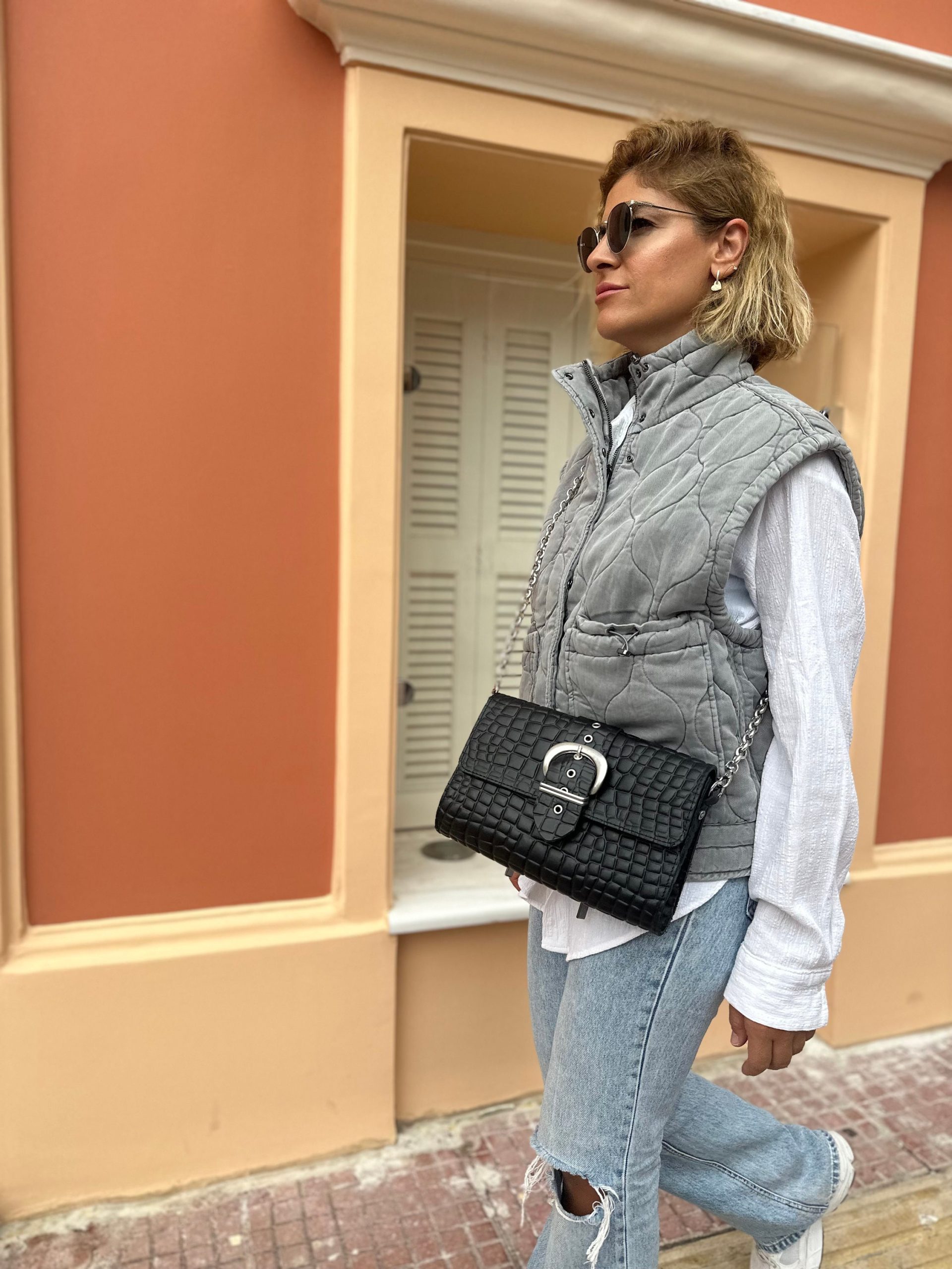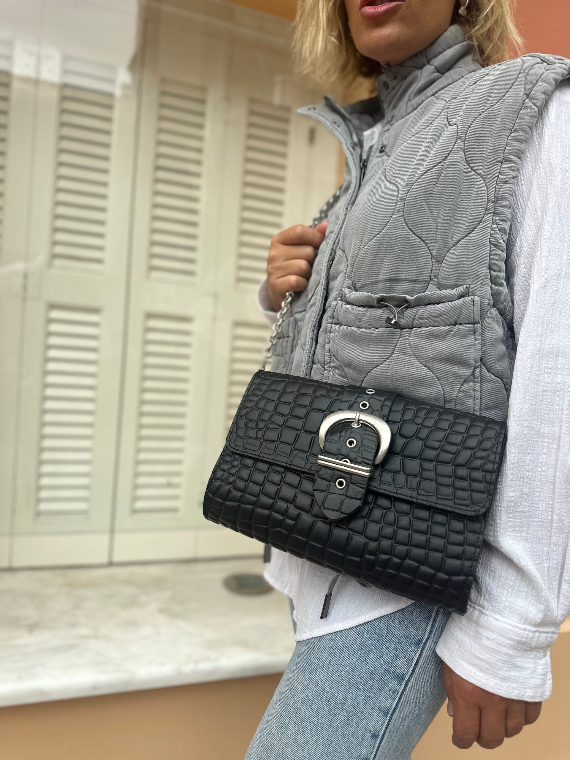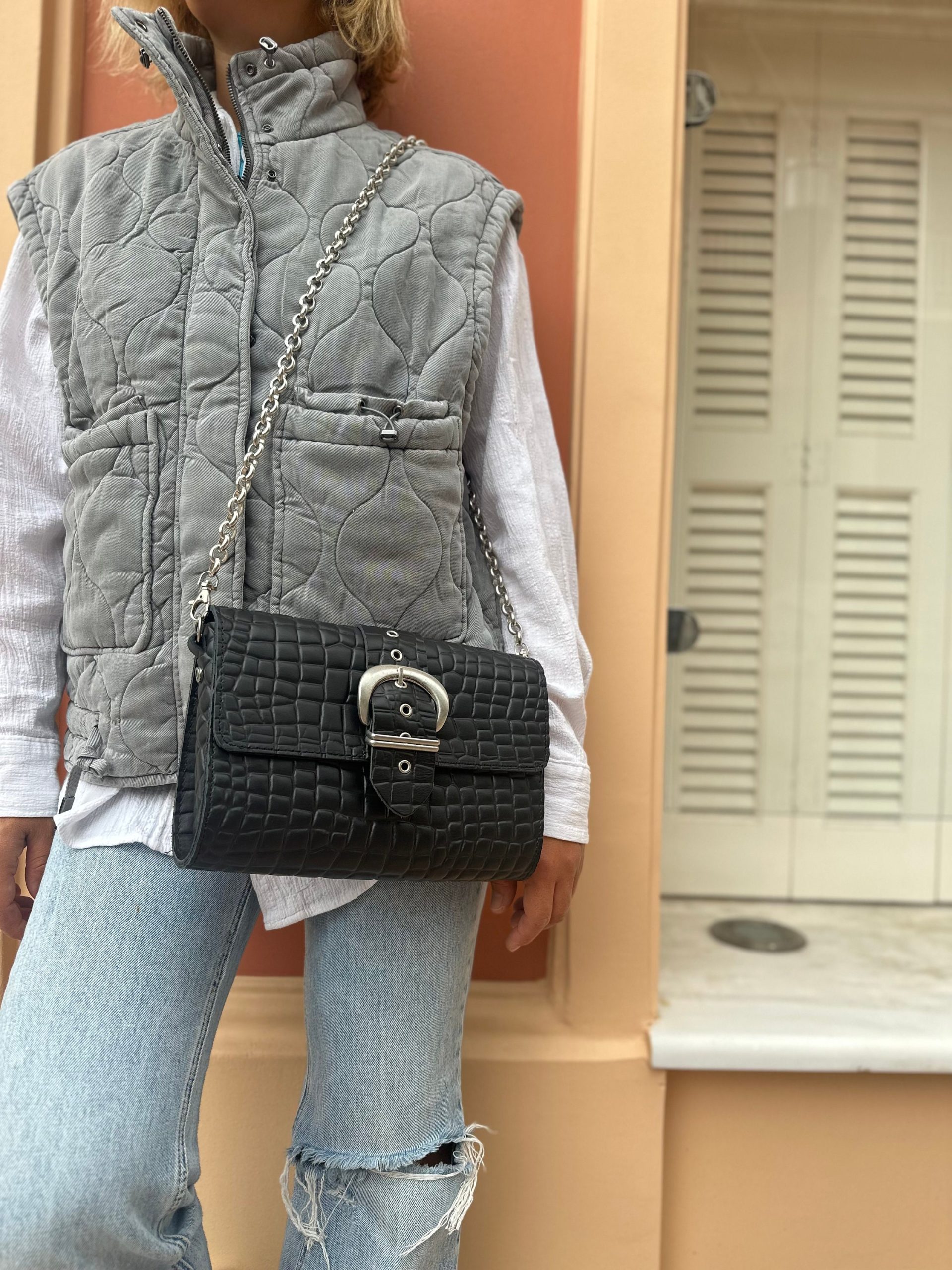 Black Leather Shoulder Bag Women Purse Silver Chain
