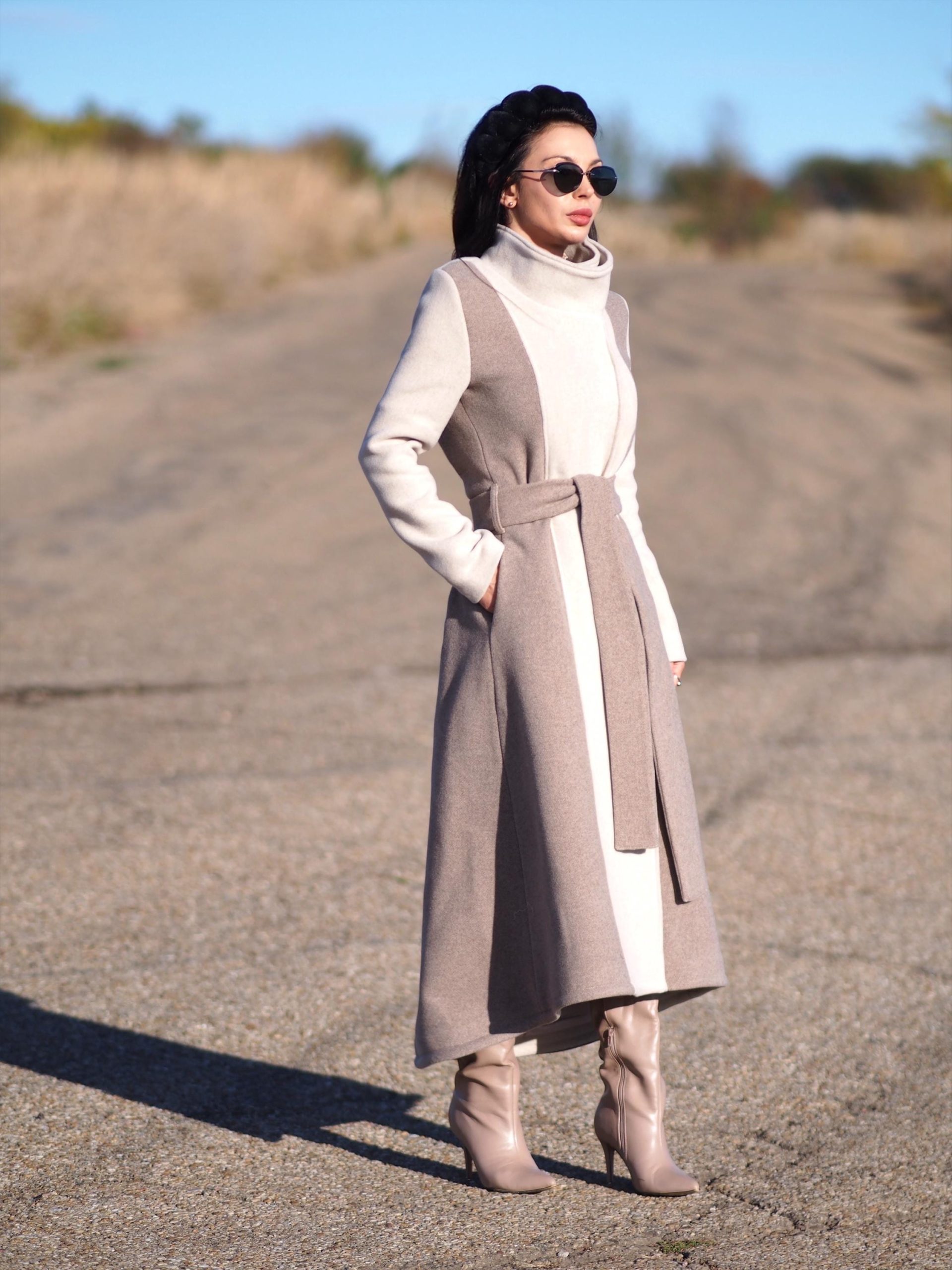 Designer Two-Tone Wool Coat Chic, Modern & Timeless